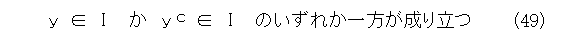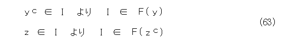 IがF( yc )の要素とすると、Iは ycc ( = y )を含む。これから、IはF( y )に含まれない。したがって、IはF( y ) c に含まれる。逆向きは読者の宿題。