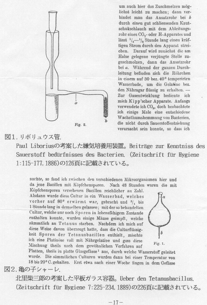 亀の甲シャーレを用いて培養した破傷風菌を注射すると、その培養菌を接種された実験動物は、発症して死ぬ。その動物実験であらわれる破傷風の症状は、注射した部位の近くから出現しはじめ、段々と全身へと広がった。下体部に接種すれば常に後ろ足に強直と痙攣があらわれ、その後になって頚部の筋肉が侵される。これは明らかに神経が侵されていることを示すものである。